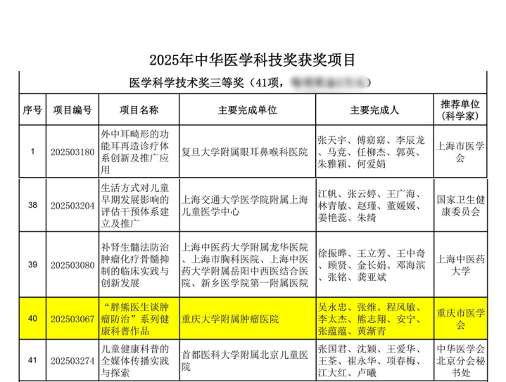 2025年中华医学科技奖获奖项目名单(部分)优配痢略。